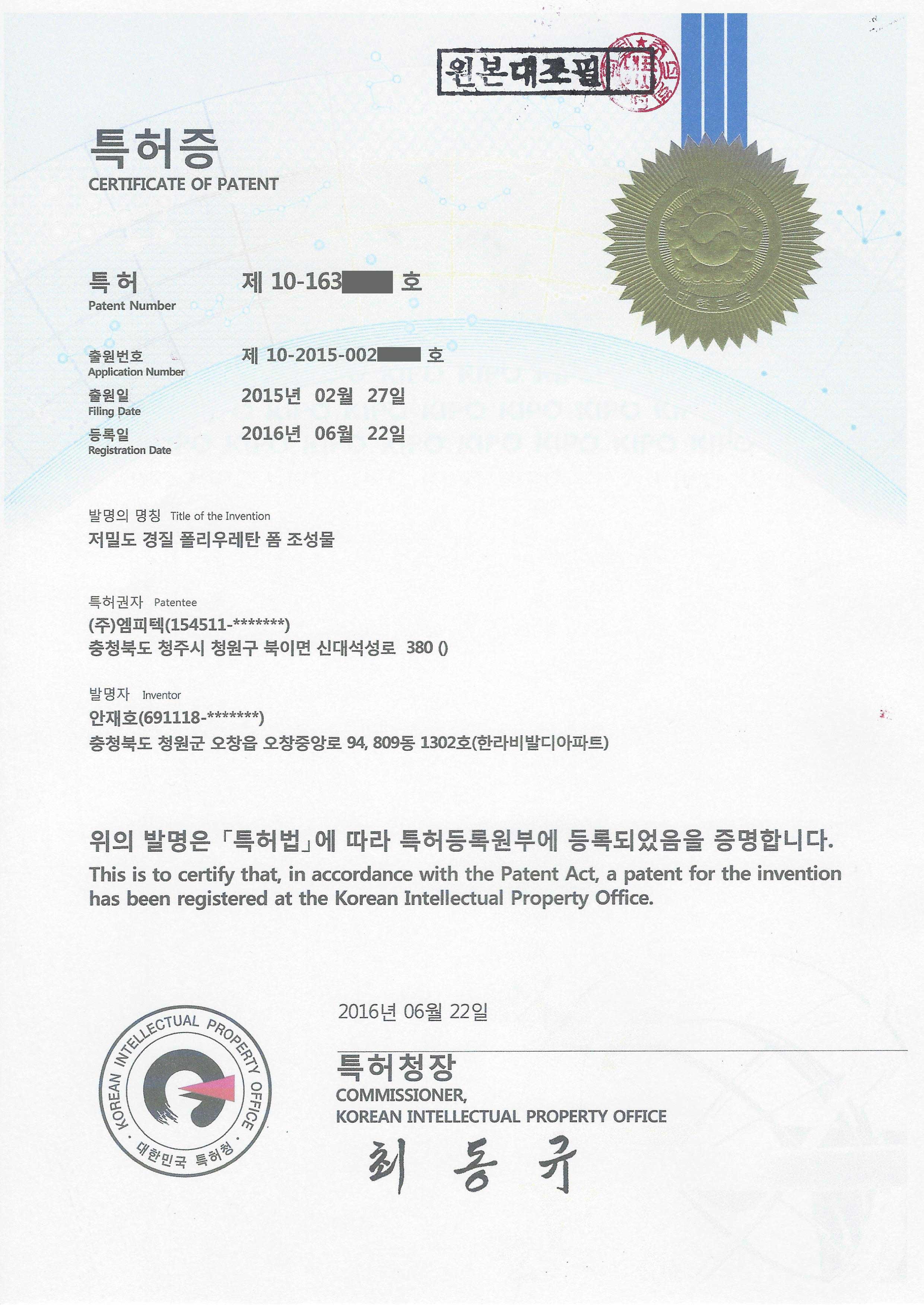 Certificate Of Patent