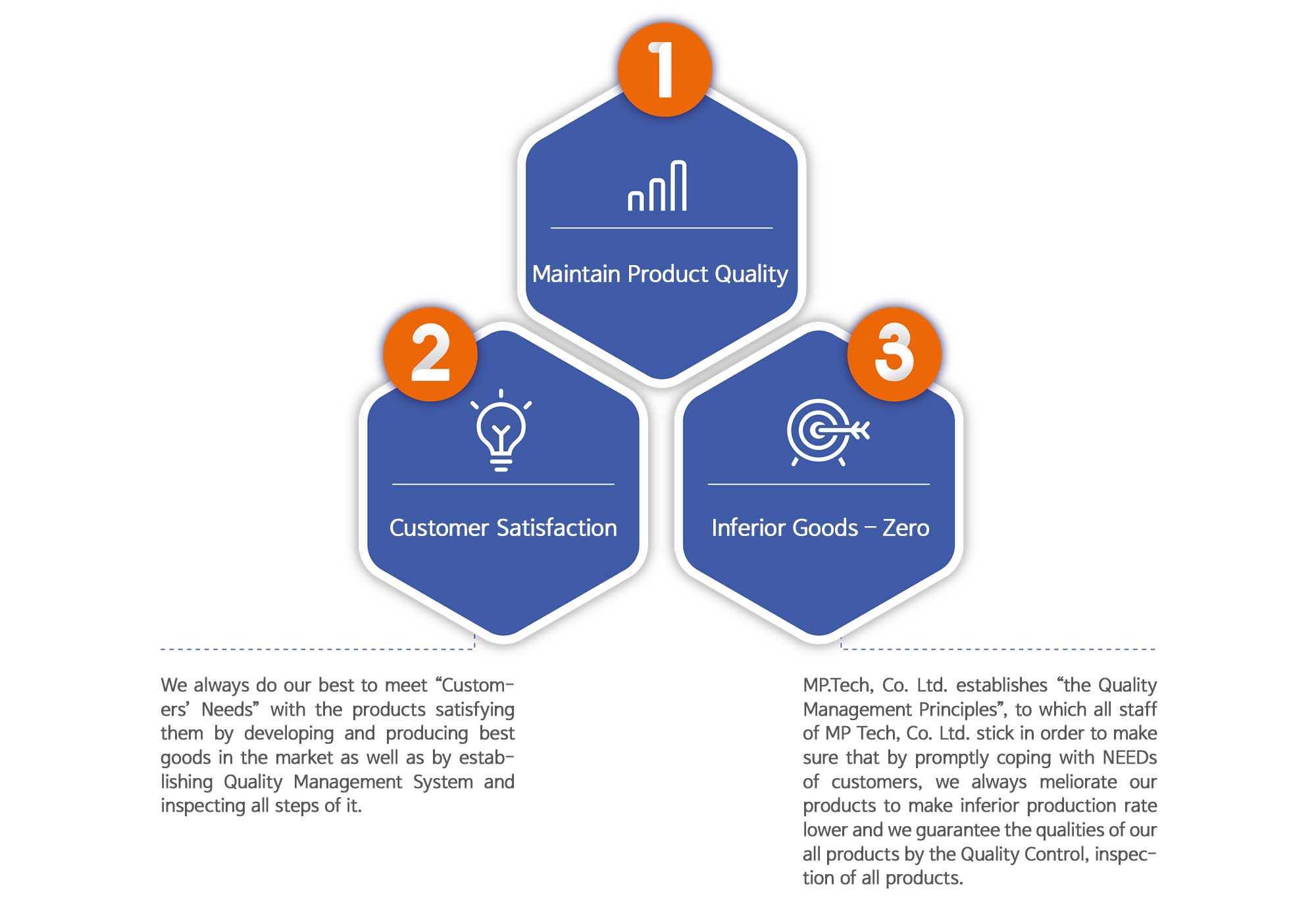 The principles for Quality Management of MP Tech, Co. Ltd. are as follows.