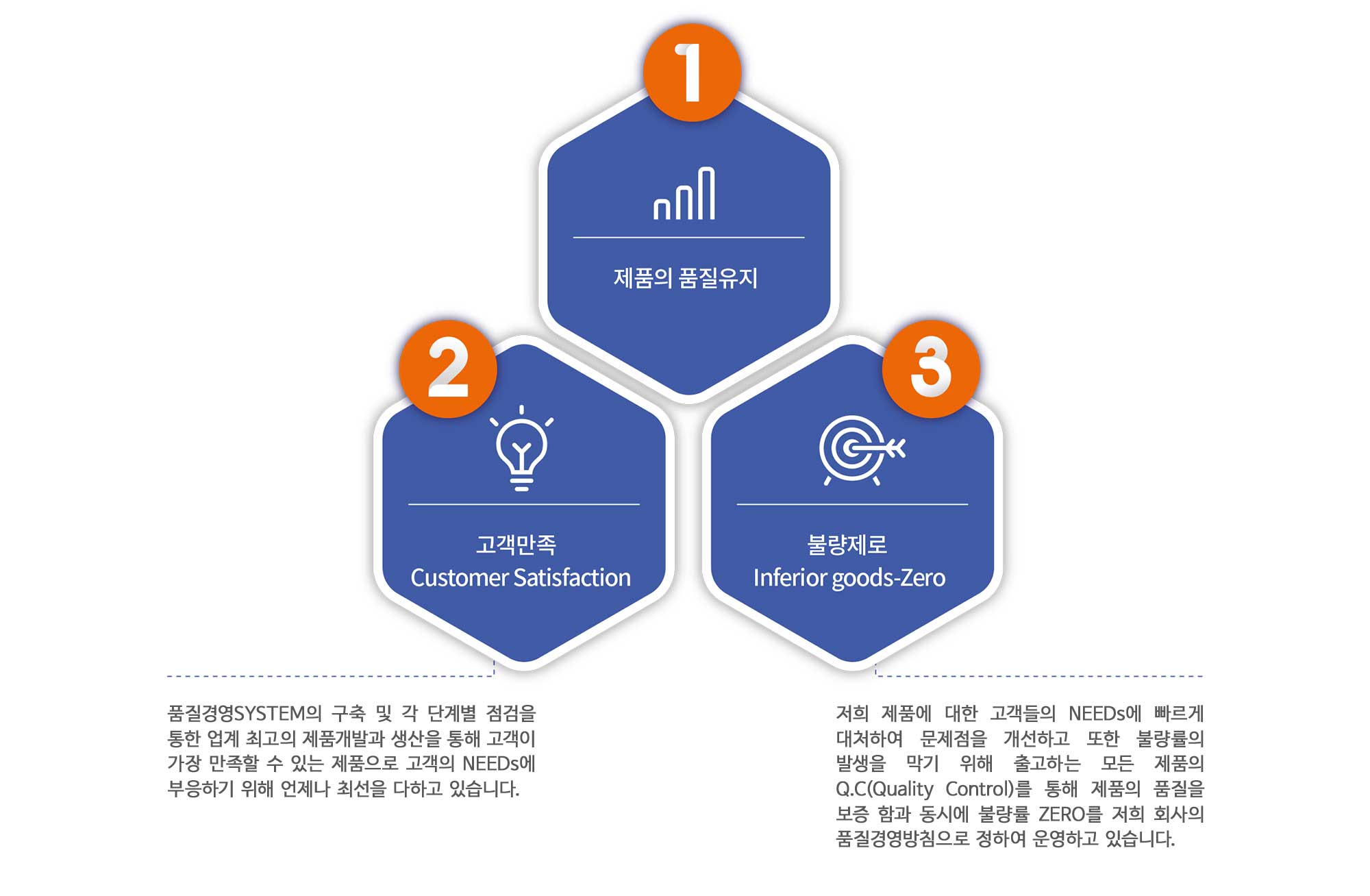 ㈜엠피텍의 품질방침은 다음과 같으며, 전 임직원은 이를 위해서 품질보증시스템의 모든 규정을 준수하고, 지속적인 품질혁신운동을 통한 완벽한 품질보증실현으로 경쟁력을 확보하고, 최고의 품질을 이루어 내고자 끊임없는 연구개발을 통한 가장 우수한 제품으로 고객만족을 위해 언제나 노력하고 있습니다.